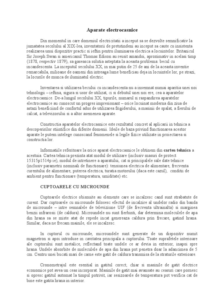 Aparate Electrocasnice Referat Fizica